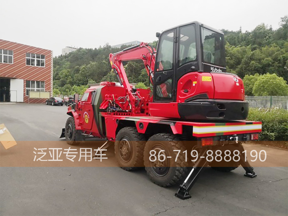 如何说它是一辆能推能挖呢?你会发现它在驾驶室前端安置了道路清障板,在后轮上是采用Kuboto久保田挖掘机装配到一起,让它成功的变成了一车多能的猛士抢险破障车。kutobo的挖掘传动方式液压传动,最大挖掘深度是3630mm。挖掘机的长、宽、高分别是5500mm、2000mm、2540mm。其单排驾驶室设计为后方的上装设备下充足的布置空间,在驾驶室选材上,依旧按照安全与责任的使命感,采用全金属包裹,让它在恶劣环境下实用性更强。